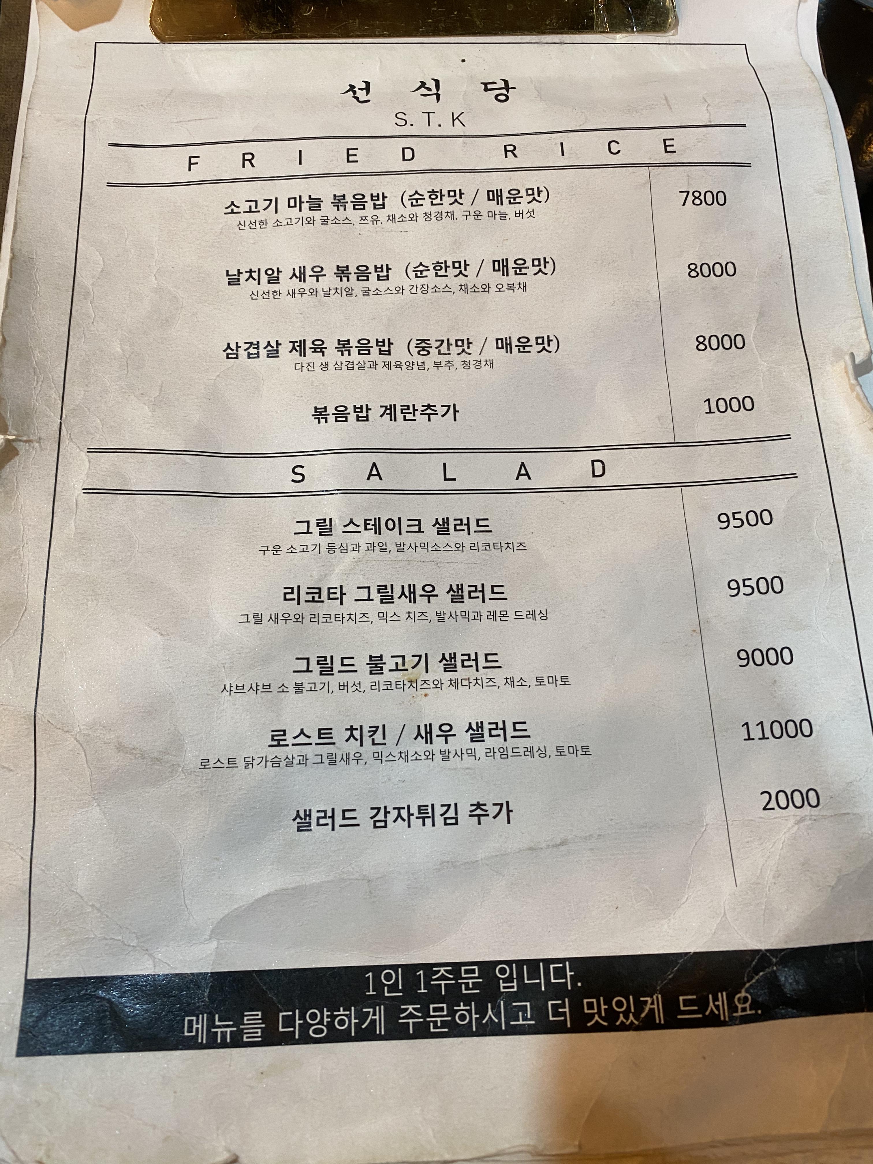 이제 제가 먹은 메뉴 소개드리겠습다~