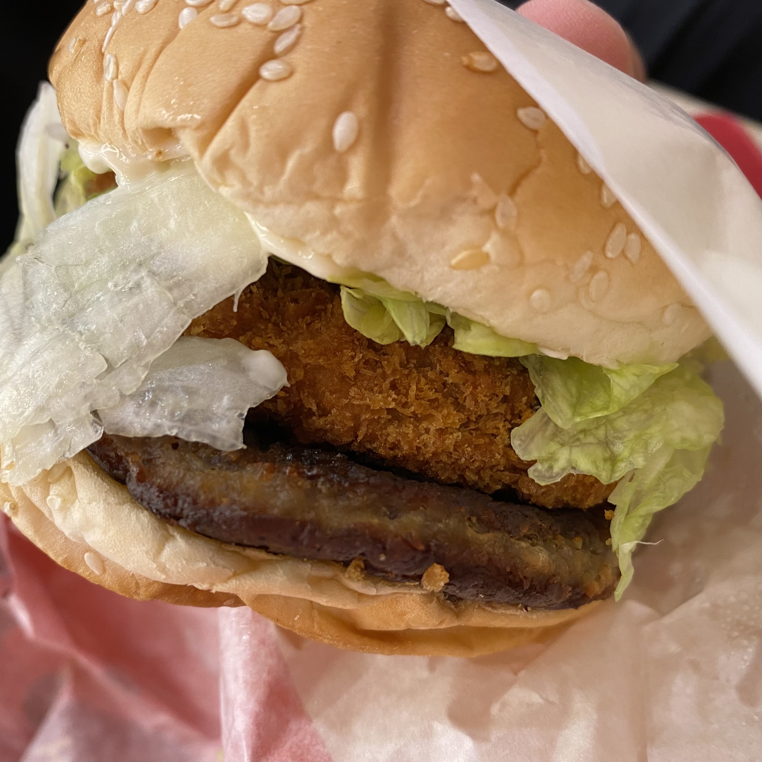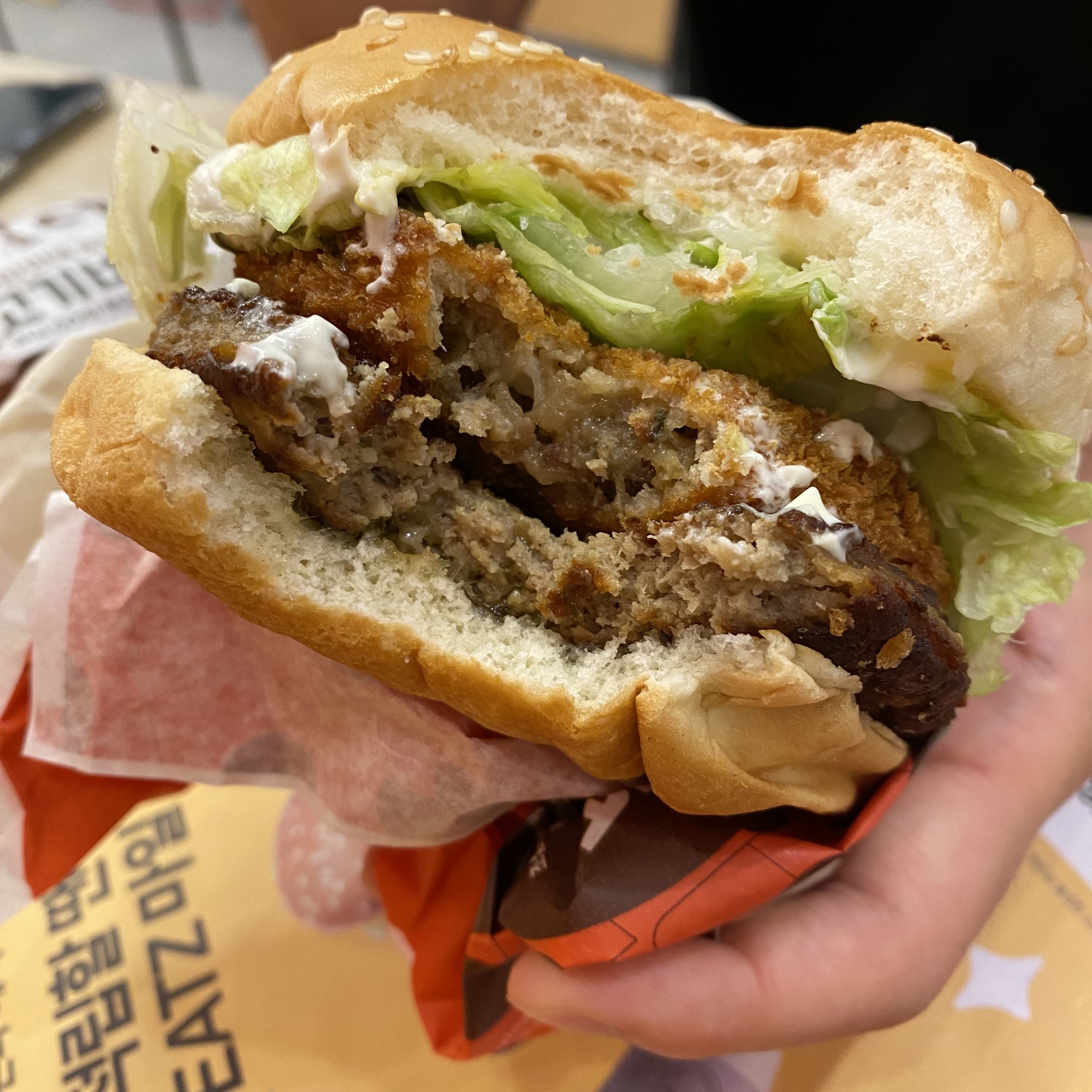 한입 먹어보고 비주얼보단 저 튀김 패티가 너무 별로였다..