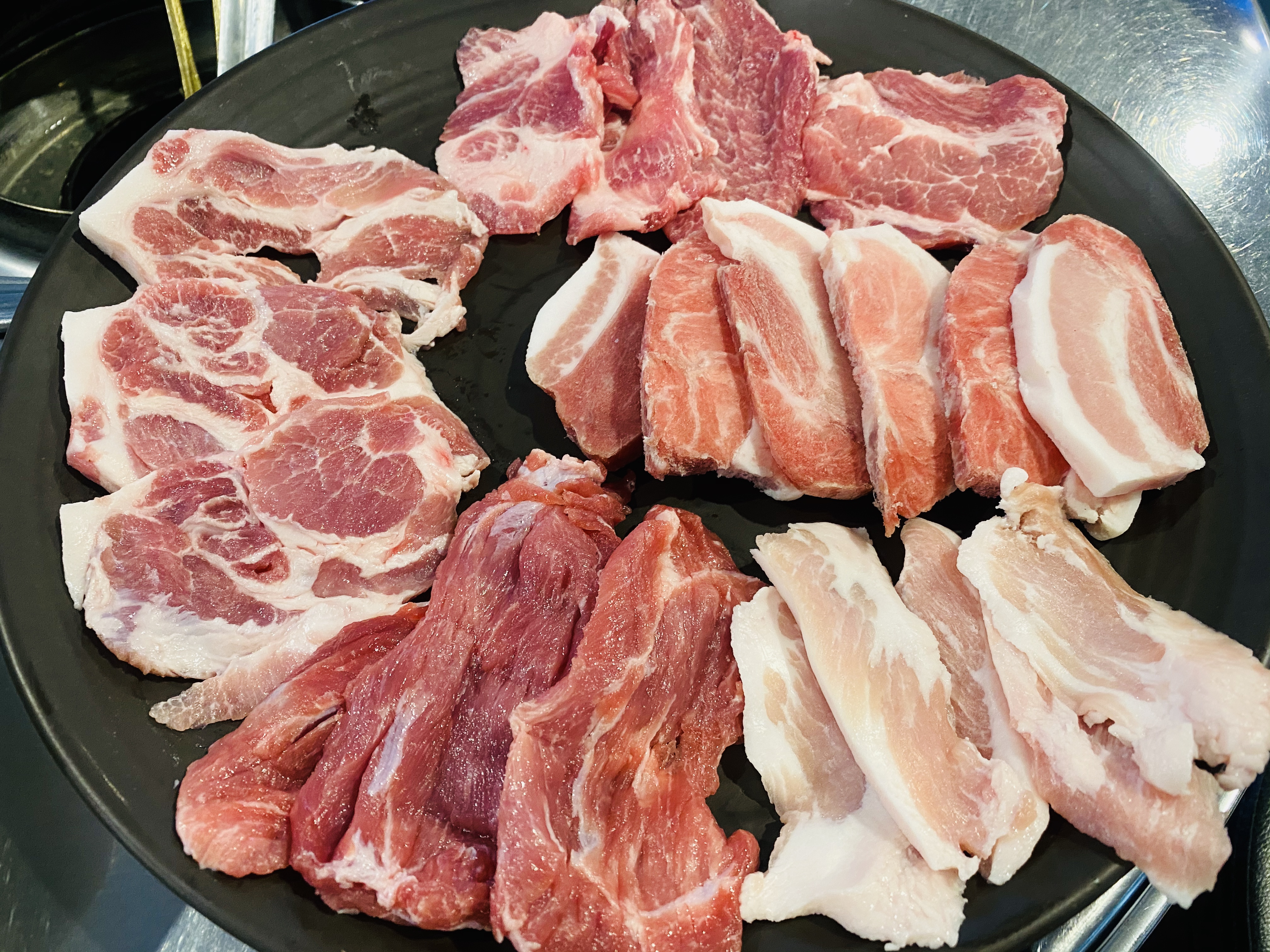 뒷고기, 덜미살, 뽈살, 주먹고기, 대패삼겹살, 생삽겹살, 차돌박이, 소막창, 되재막창, 돼지갈비, 껍데기
