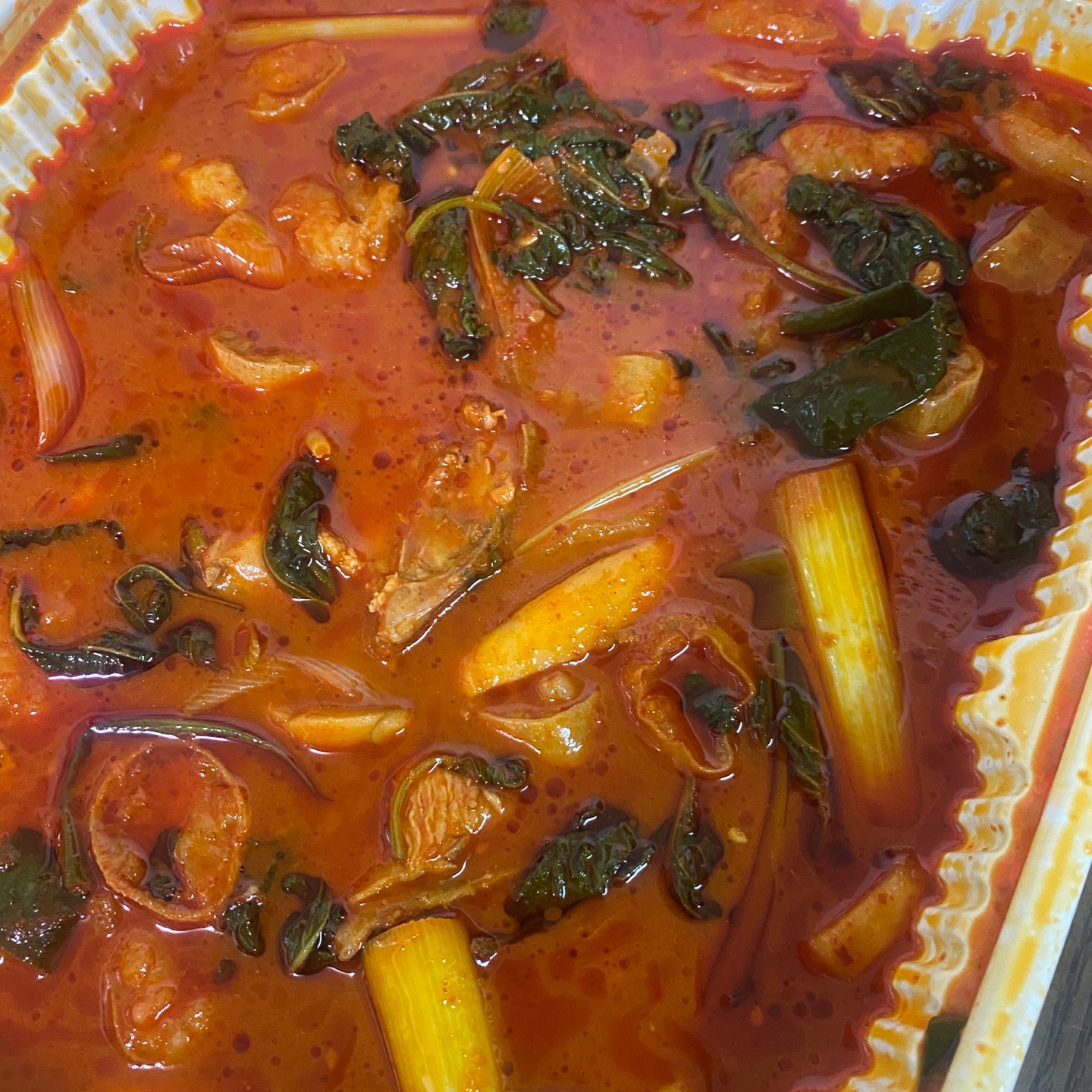 닭, 대창, 깻잎, 파, 감자, 양파, 버섯, 떡 등 이렇게 들어있어요~